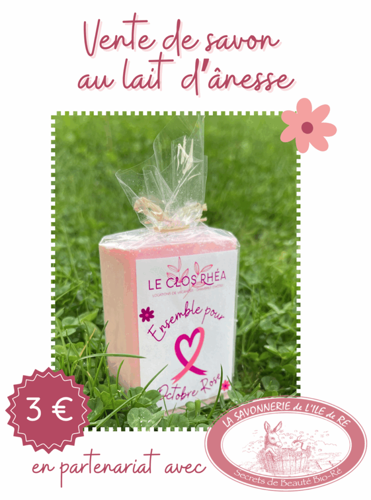La cagnotte globale composée de vos dons, les bénéfices de la vente des savons et de la participation du Clos Rhéa sera reversée intégralement par Le Clos Rhéa à L’Institut du Sein de Charente Maritime sans aucun frais.
