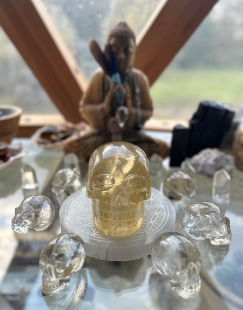 Soin énergétique complet avec les crânes de cristal alignés sur les 7 chakras , suivie d’une méditation guidée